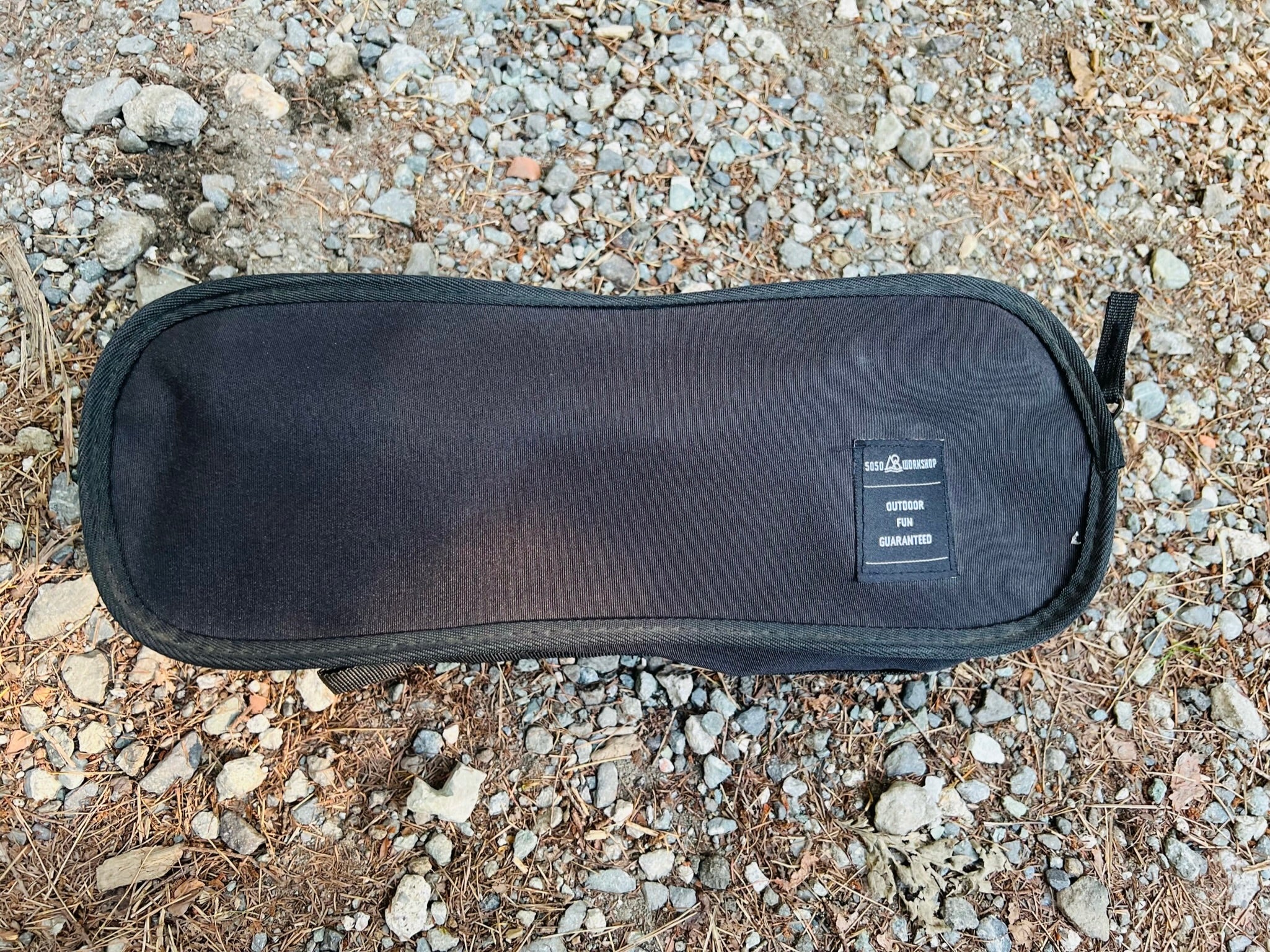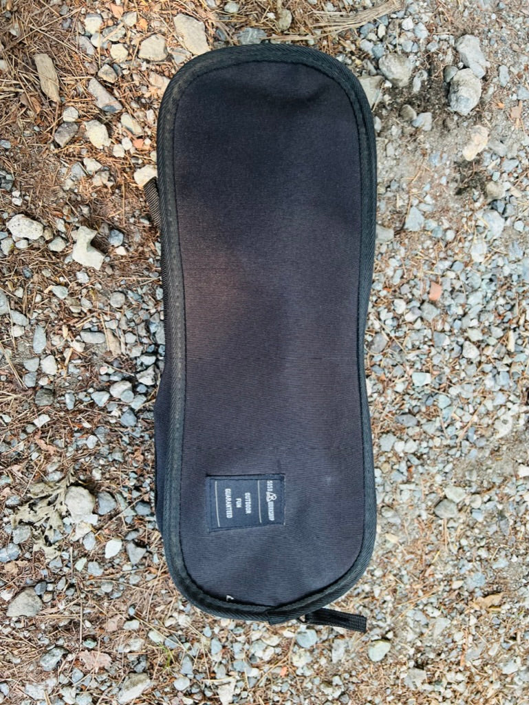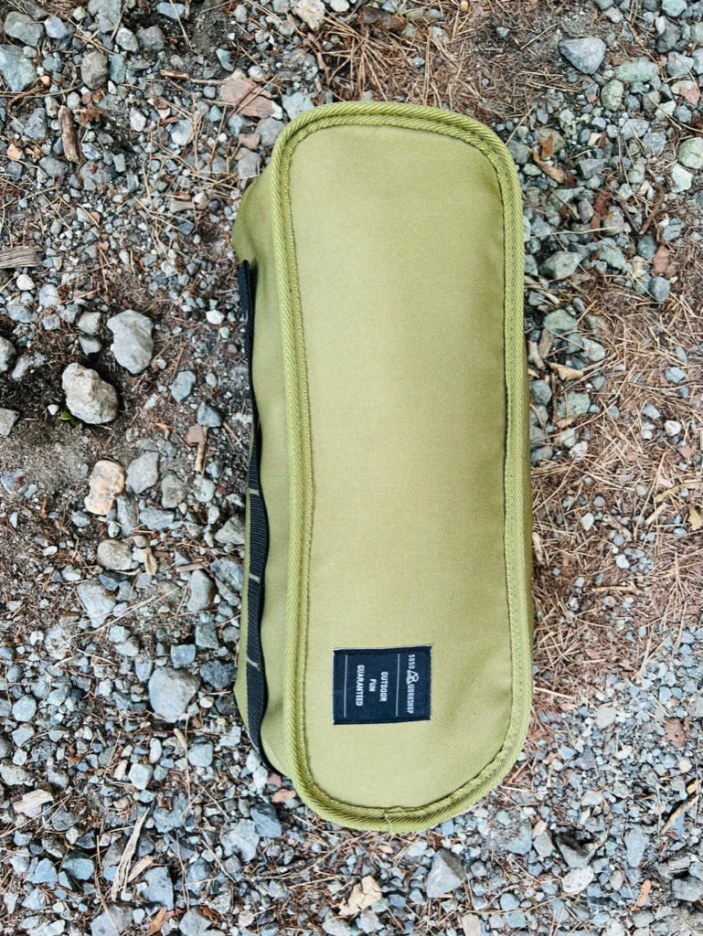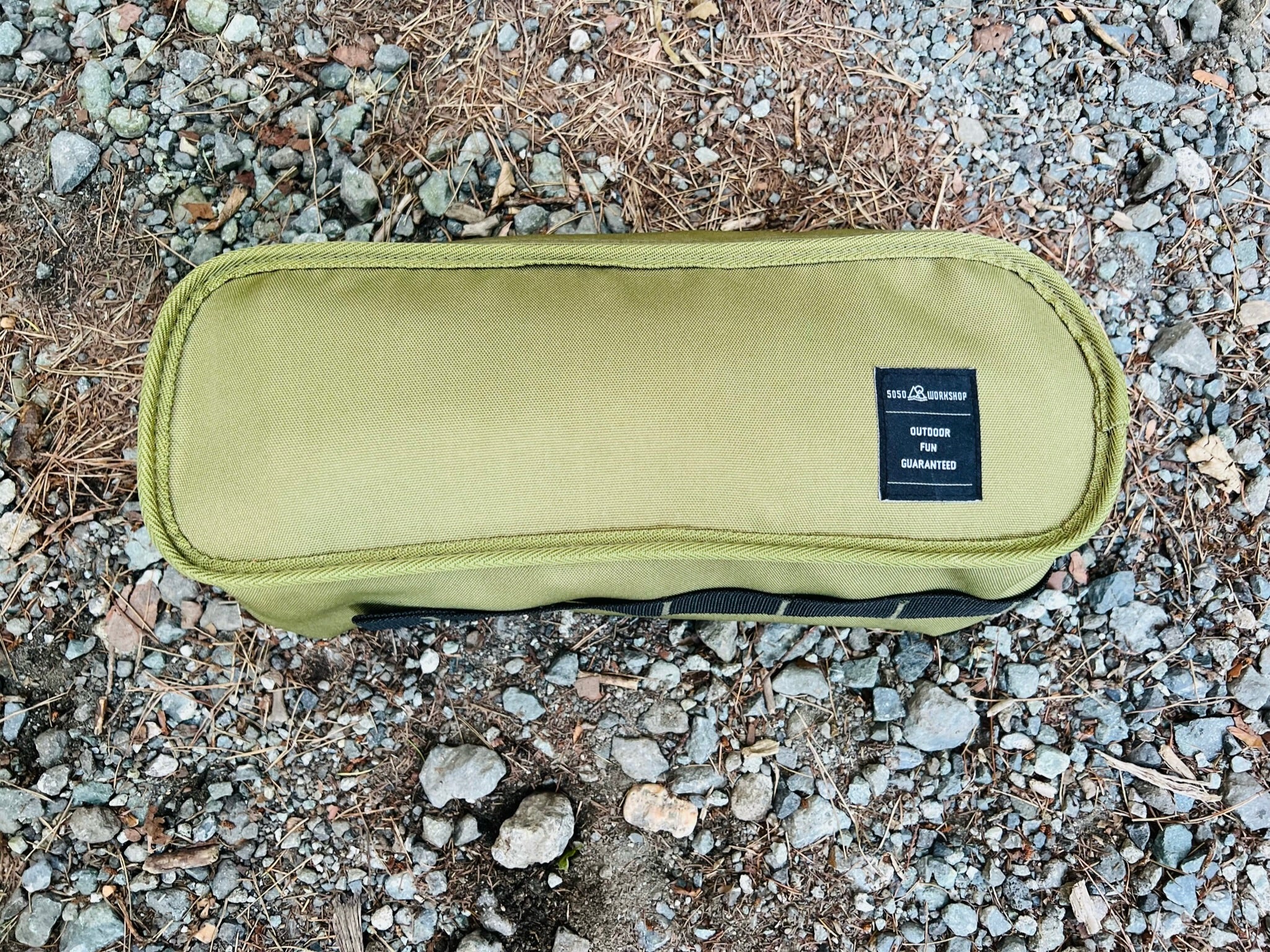 この中に少し重いものを入れておくと、背面に色々引っ掛けてもチェア全体がひっくり返らないのでおすすめです。風の強い日のキャンプでよくチェアが引っくり返っているのをよく見ますが、それを防げます。