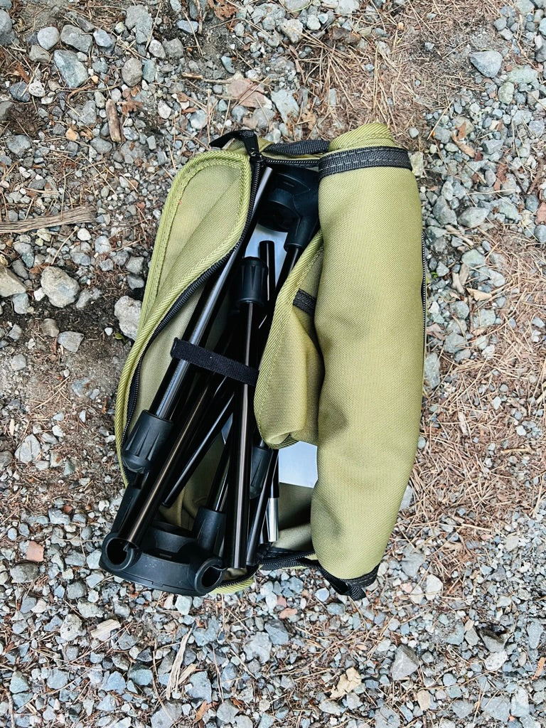 持ち運びがコンパクトなだけでも、十分なポイントなのですが、キャンプ場に到着してからこの椅子を使う時に便利さをさらに発揮します。