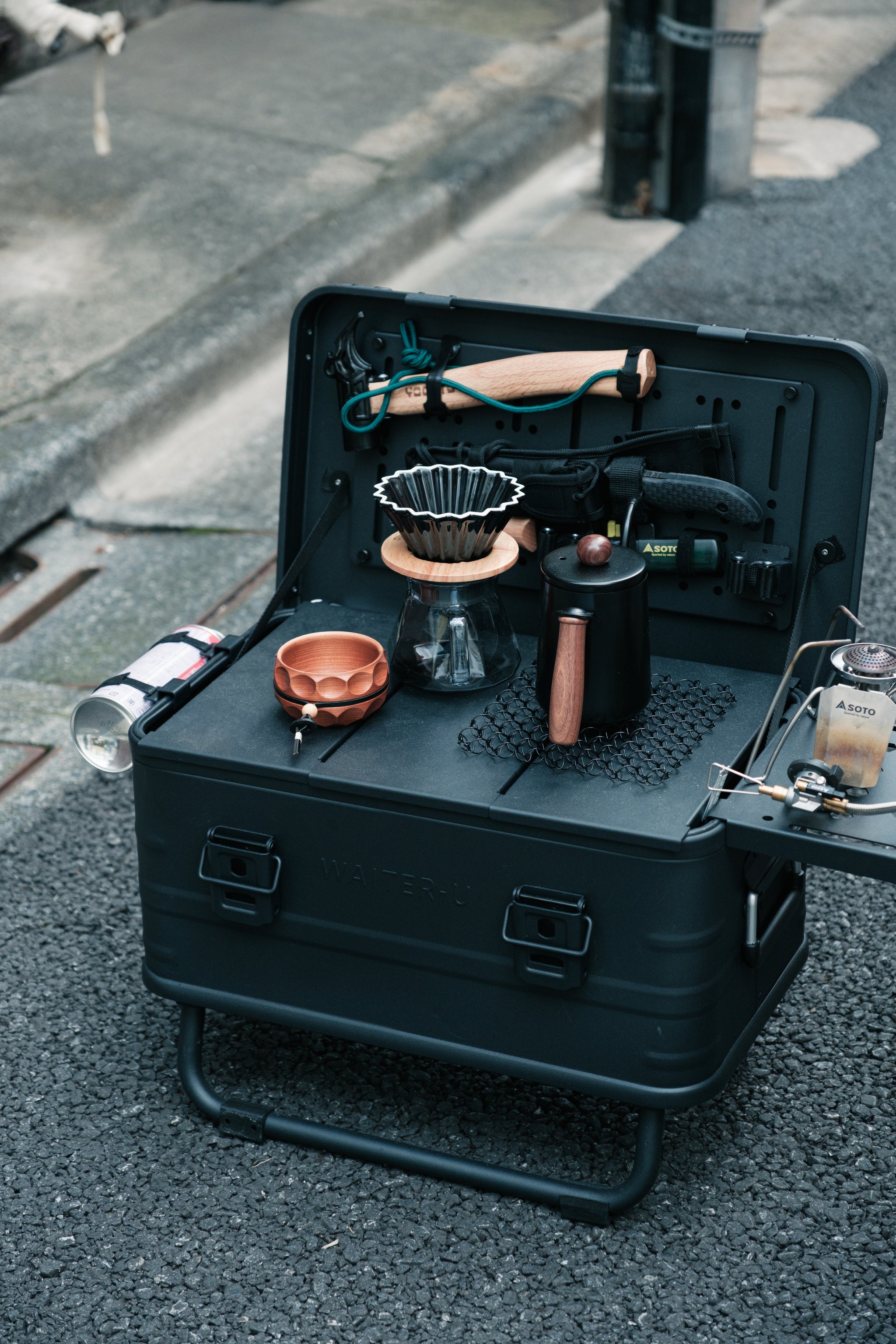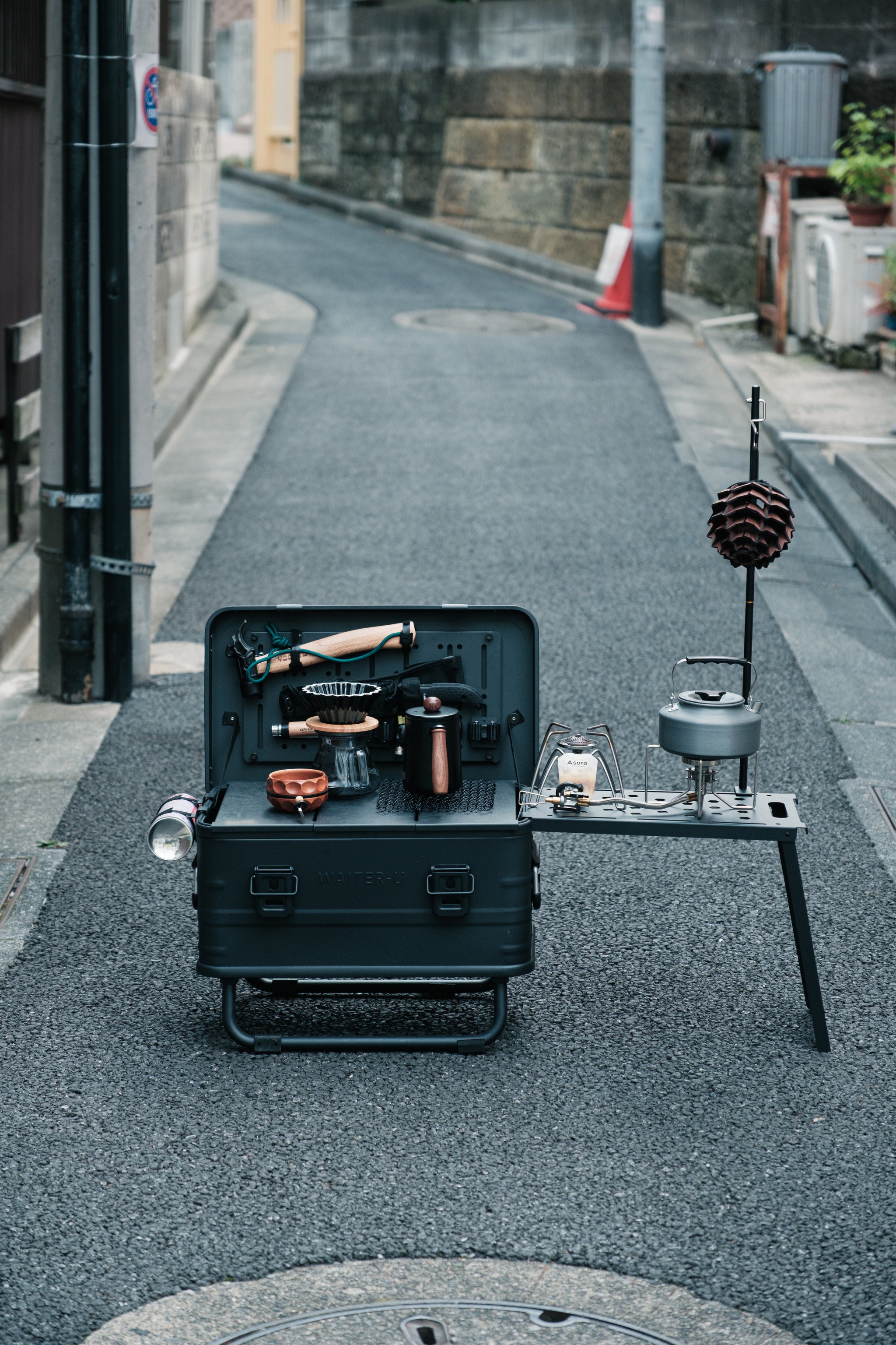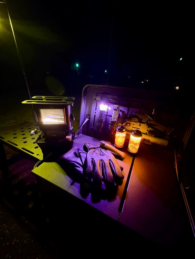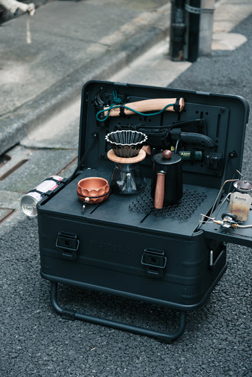 - CB缶を横面にセットしてお持ちのバーナーをセットすれば作業台キッチンになります