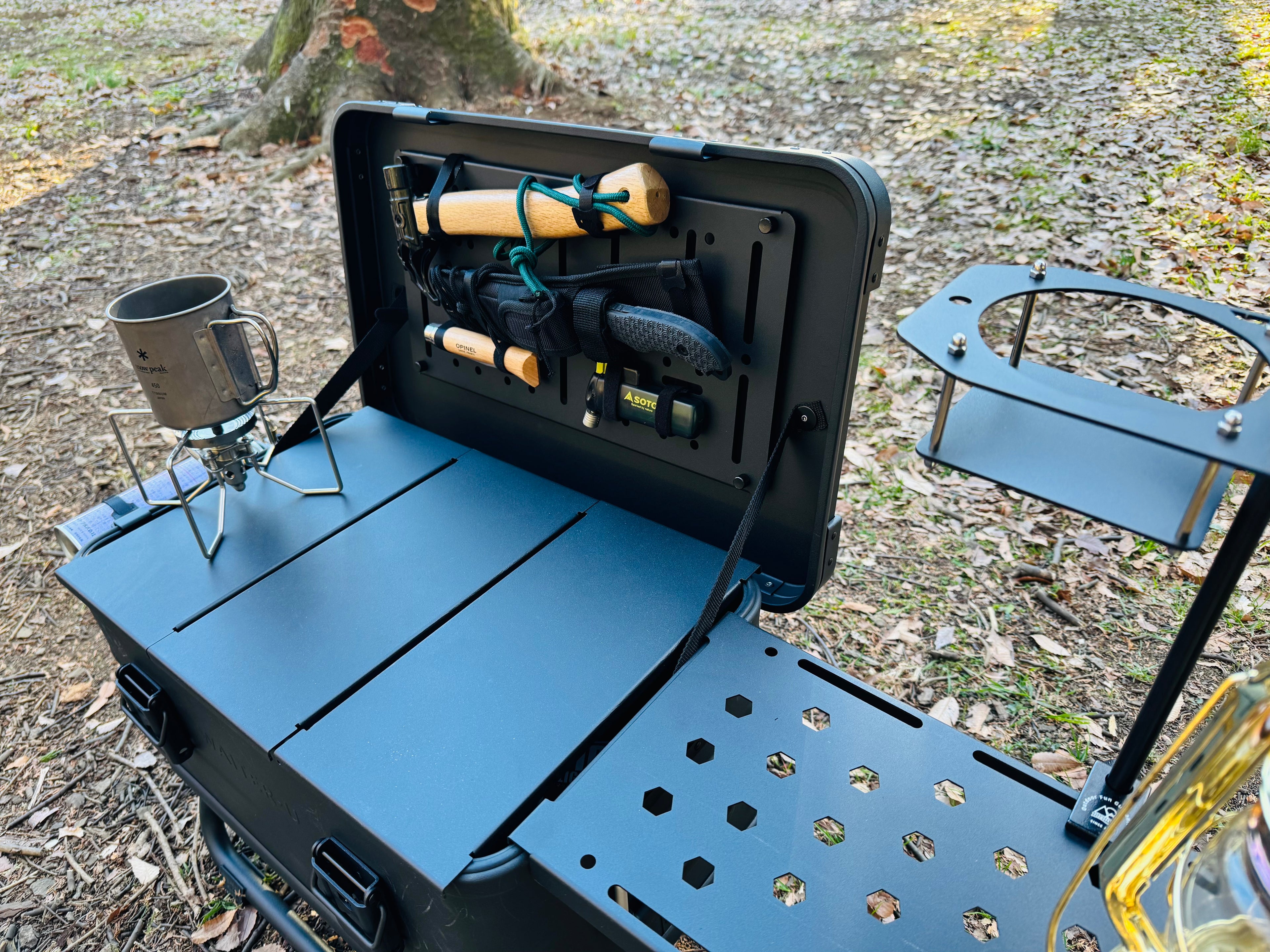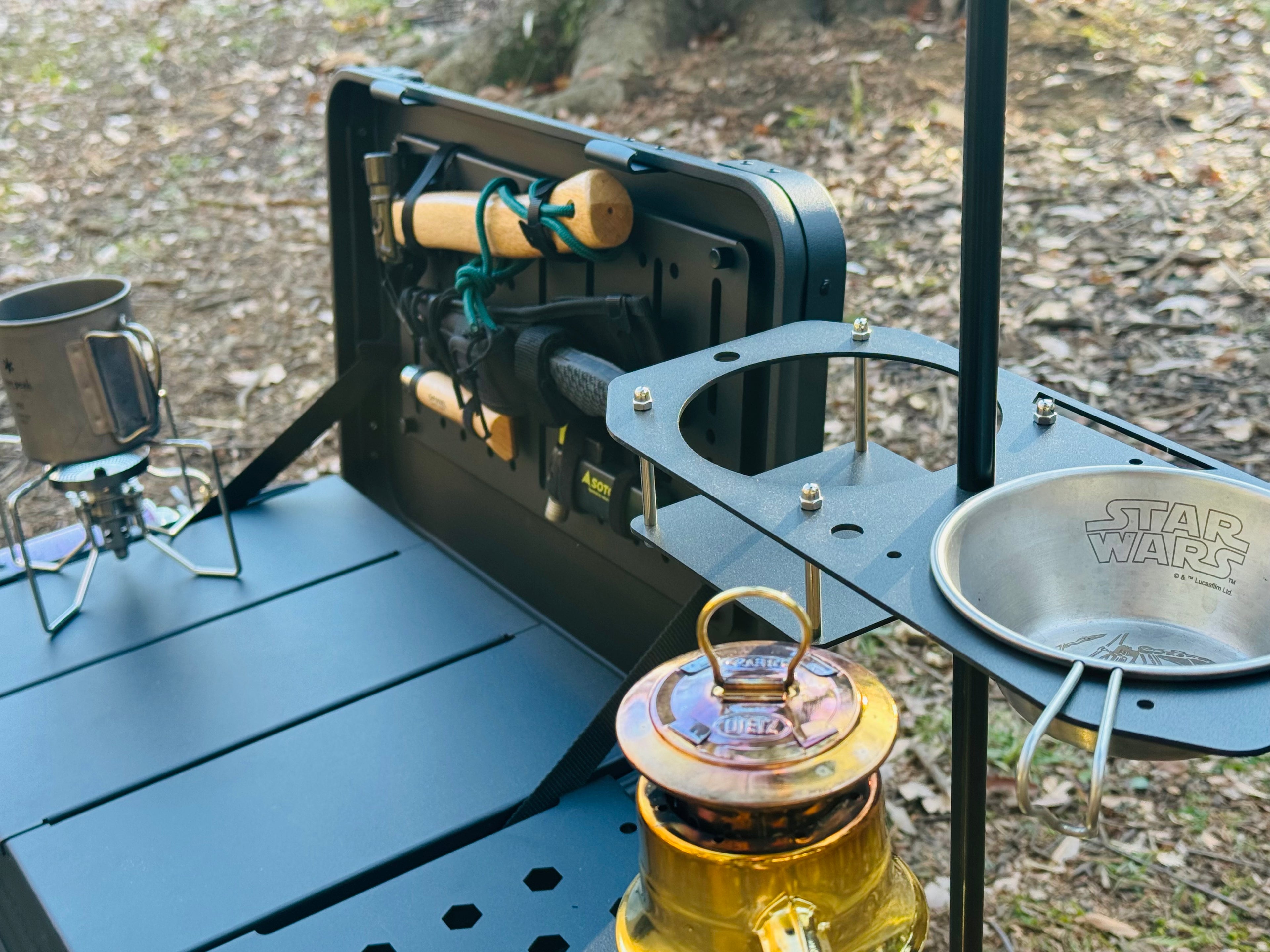 - 拡張テーブルにはシェラカップのハンドルが掛けられるようなスリットが入っています
