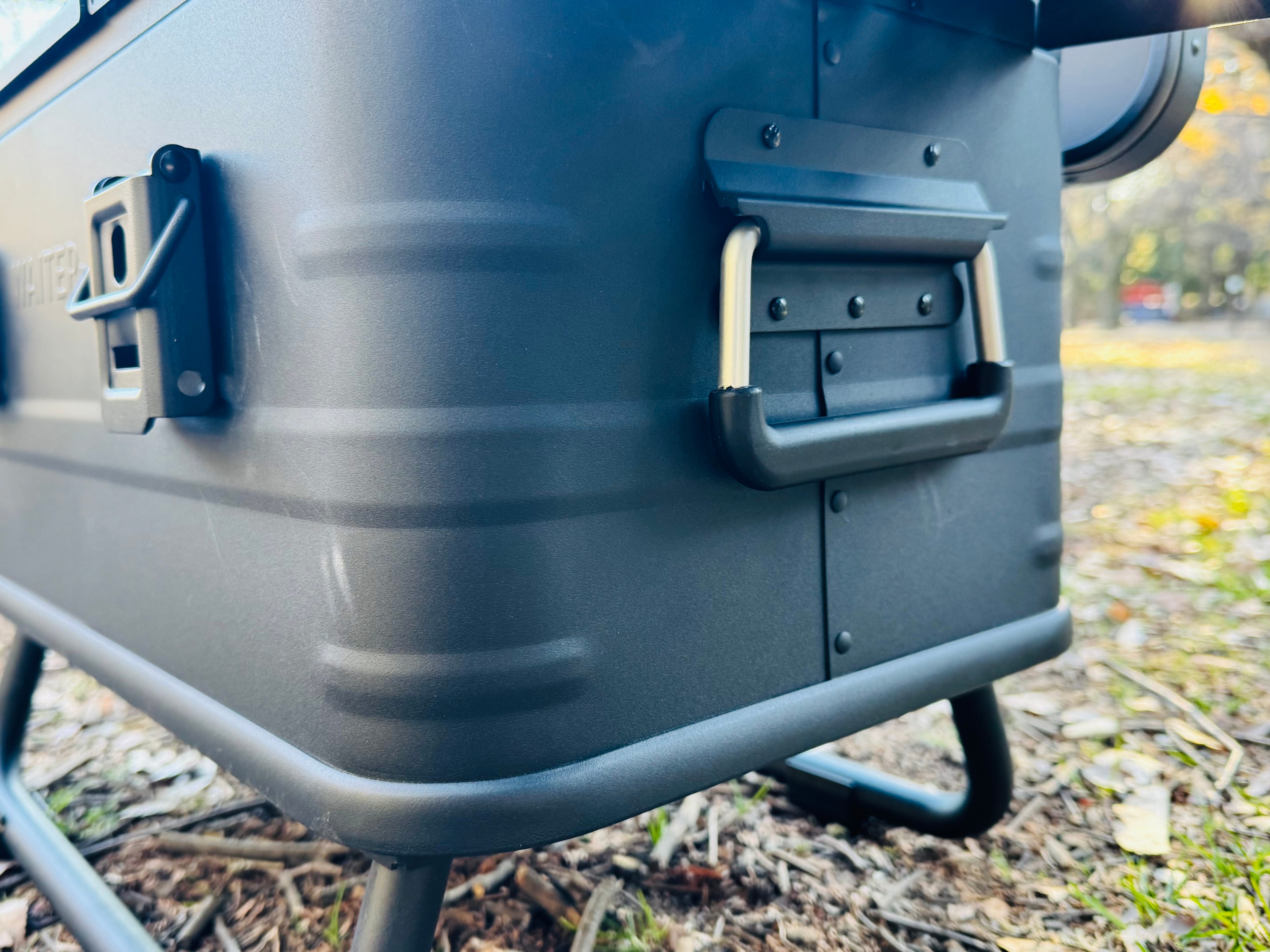 - 移動中に蓋が開いてしまうことがないよう、ガッチリとしたハンドル式ロックを装備